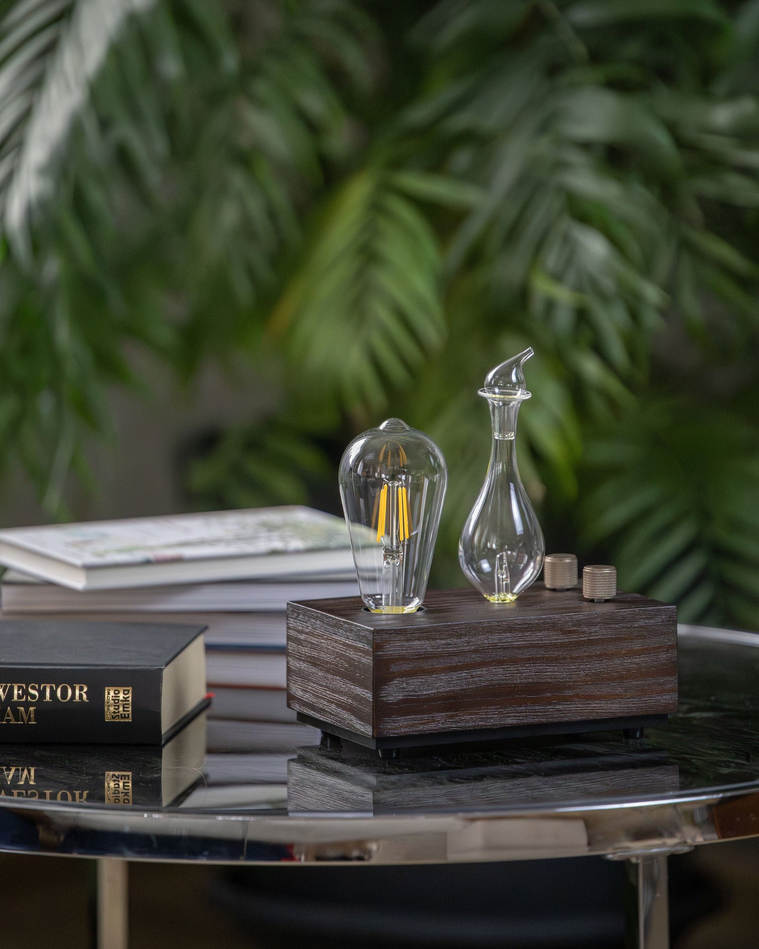 Bringen Sie mit unserem ätherischen Ölvernebler mit eleganter Glühbirne eine einzigartige Atmosphäre in Ihr Zuhause. Er ist eine Kombination aus Eleganz und modernem Design , die jedes Interieur perfekt ergänzt.