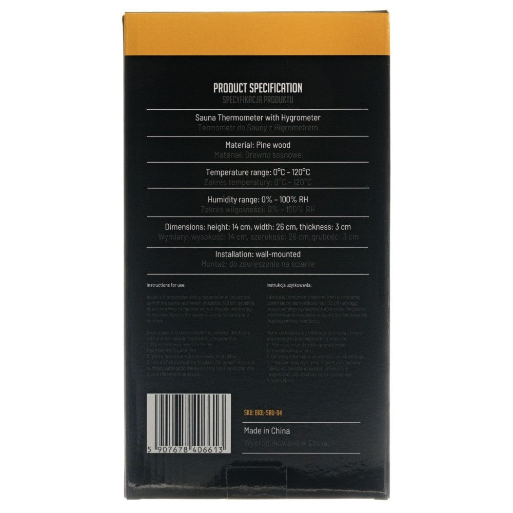 Das Sauna-Thermometer mit Hygrometer von Bilovit ist ein unverzichtbares Gerät für alle, die Wert auf Komfort und optimale Bedingungen beim Saunagang legen. Es besteht aus hellem Kiefernholz, und erwärmt sich nicht, wodurch es ideal für den Einbau in Saunen geeignet ist. Das Thermohygrometer ist mit zwei präzisen Uhren ausgestattet, die die aktuelle Temperatur (von 0 bis 120 Grad Celsius) und die Luftfeuchtigkeit (von 0 bis 100%), deutlich anzeigen, sodass Sie die Bedingungen in der Sauna vollständig kontrollieren können. Dank seines minimalistischen Designs passt es perfekt in moderne und traditionelle Saunainterieurs.