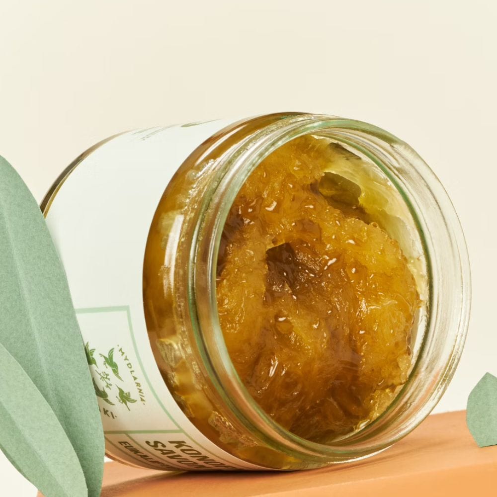 Erleben Sie eine belebende Reinigung mit Cztery Szpaki Savon Noir Seife Eukalyptus und Salbei , einer erfrischenden Seife aus natürlichen Inhaltsstoffen wie ätherischem Minzöl, Sheabutter, und grüner Gerste. Diese 250-g-Seife hat eine kühlende und revitalisierende Wirkung, die perfekt ist, um den Tag mit Energie zu beginnen. Mit ihren antiseptischen Eigenschaften und ihrer hautpflegenden Formel ist sie für alle Hauttypen geeignet und bietet eine erfrischende Alternative für Ihre tägliche Routine.