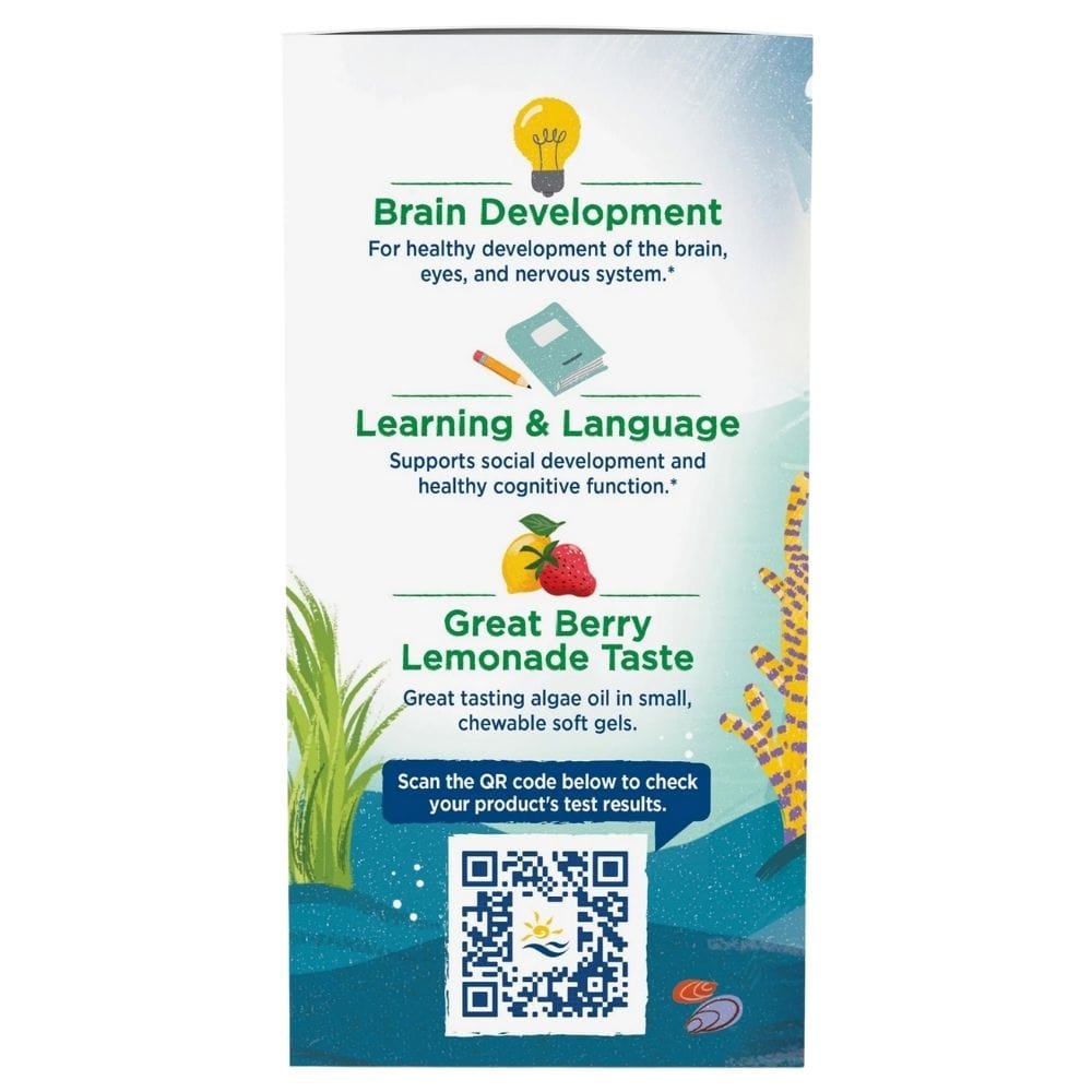 Es enthält Omega-3-DHA aus Mikroalgen, das die kindliche Entwicklung und die Gesundheit des Immunsystems unterstützt. Es liefert 375 mg DHA pro Portion.