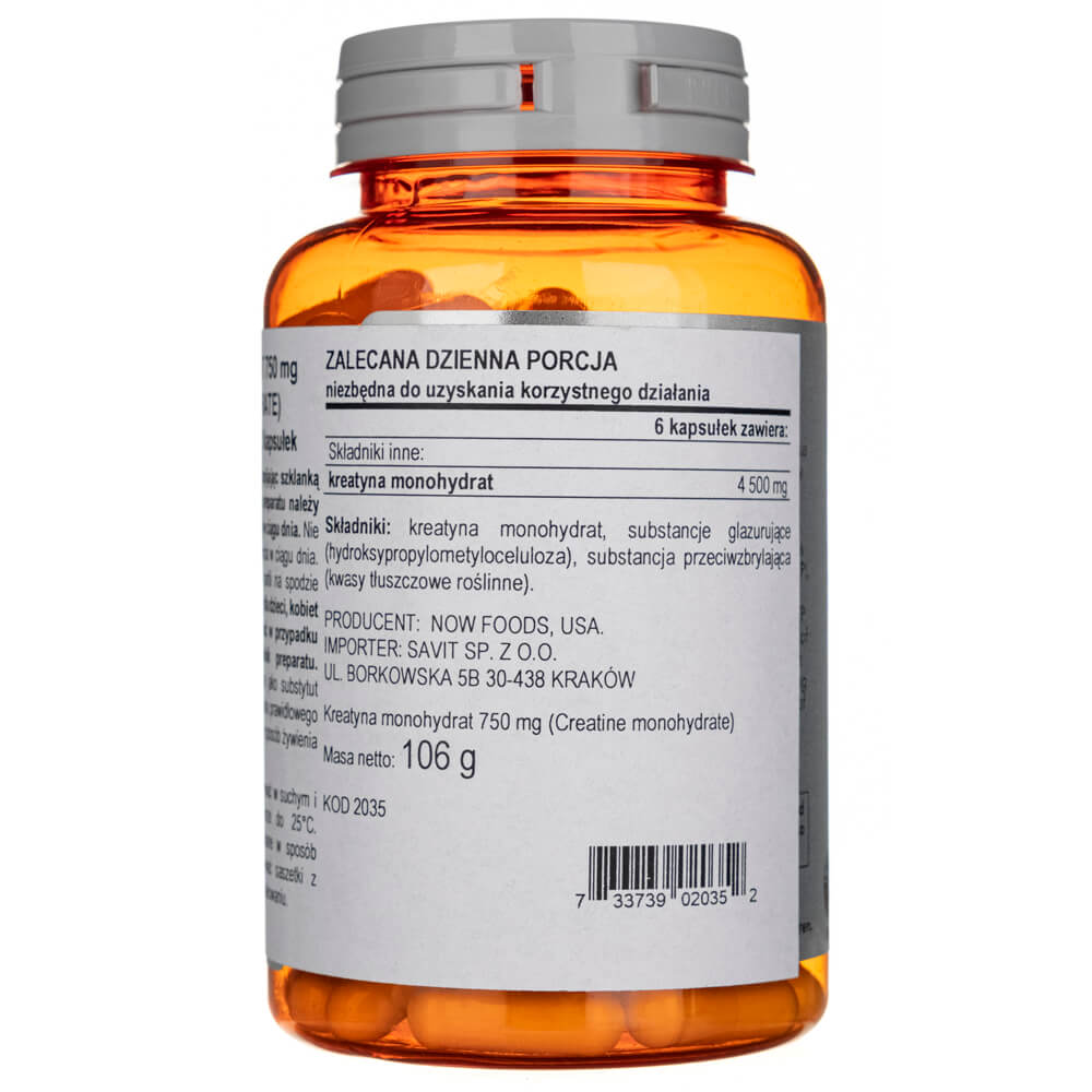 Now Foods Kreatin-Monohydrat 750 mg - 120 pflanzliche Kapseln