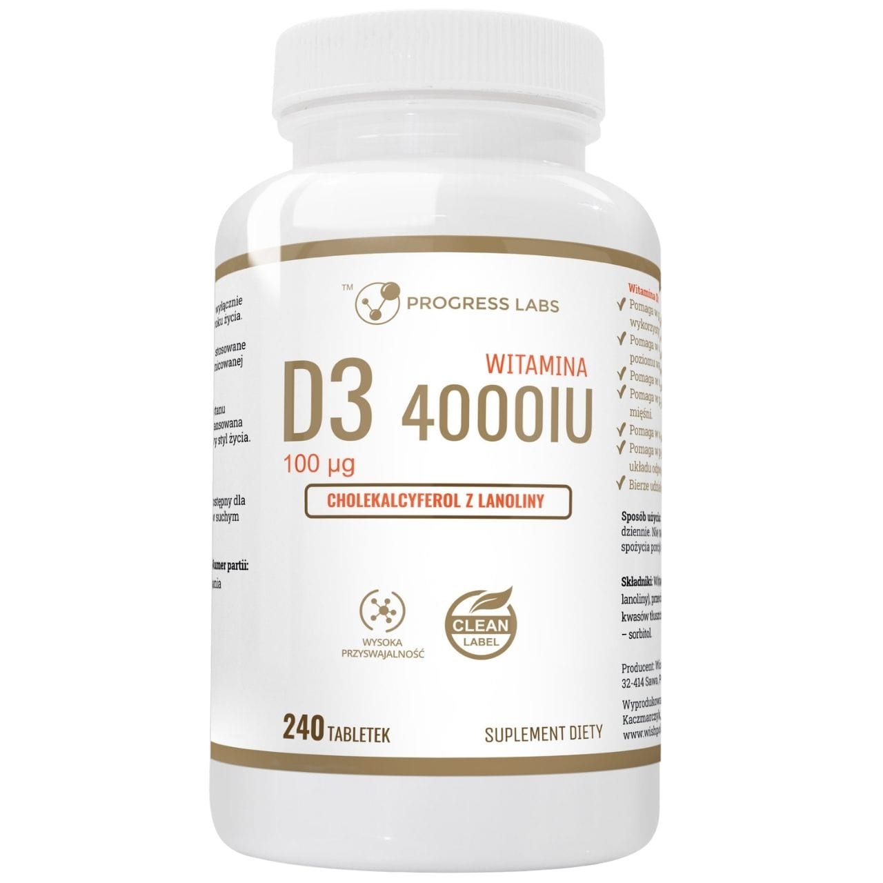 Progress Labs Vitamin D3 4000 IE - 240 Tabletten