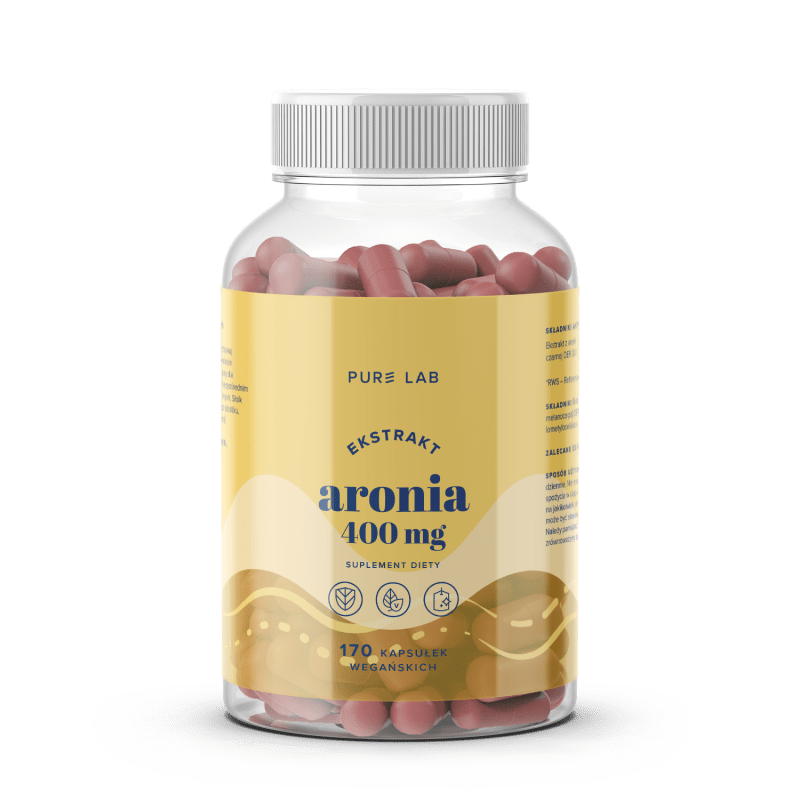 Pure Lab Aronia Extract ist ein Nahrungsergänzungsmittel in Kapseln mit Extrakt aus schwarzen Aroniabeeren.