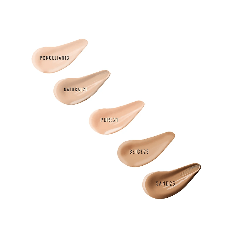 Aqua, Cyclopentasiloxan, Titandioxid, Methyltrimethicon, Propandiol, Butyloctylsalicylat, PEG-10-Dimethicon, Dimethicon, Niacinamid, Trimethylsiloxysilikat, Isododecan, Trisiloxan, Magnesiumsulfat, Methylmethacrylat-Crosspolymer, Ethylhexylmethoxycinnamat, Lauryl-PEG-10-Tris(Trimethylsiloxy)silylethyldimethicon, Disteardimonium-Hectorit, 1,2-Hexandiol, Diphenyldimethicon/Vinyldiphenyldimethicon/Silsesquioxan-Crosspolymer, Capryl-/Capringlyceride, Polymethylsilsesquioxan, gelbes Eisenoxid (Ci 77492), Aluminiumhydroxid, Triethoxycaprylylsilan, rotes Eisenoxid (Ci 77491), Butylenglykol, Polysilikon-11, Adenosin, schwarzes Eisenoxid (Ci 77499), Polyglutaminsäure, Chamaecyparis Obtusa-Wasser, Tocopherol, Hyaluronsäure, Parfüm, Titandioxid (Ci 77891).