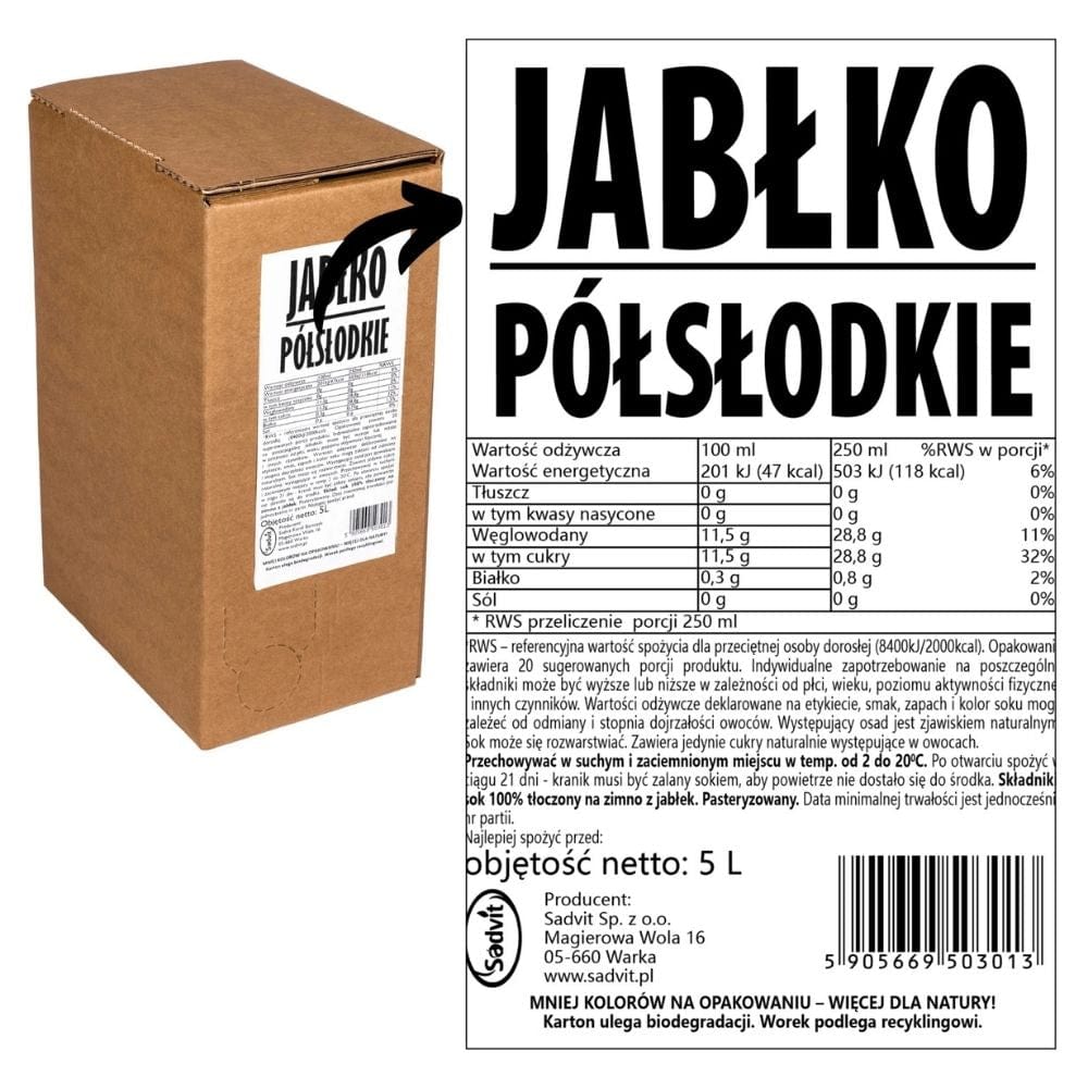 Sadvit Halbsüßer Apfelsaft - 5000 ml ist auf Lager und wird versandt, sobald es wieder verfügbar ist