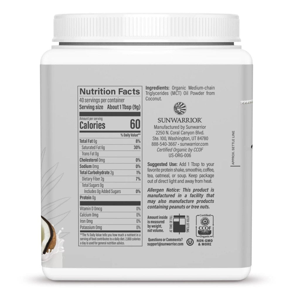 Sunwarrior Active MCT Oil ist eine Pulverformel mit organischem, Kokosnussöl in Pulverform. Vegan, ohne unnötige Zusätze und Füllstoffe.