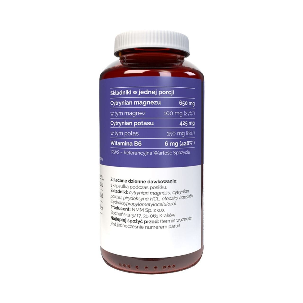 Vitaler Magnesium + Kalium + B6 ist ein Nahrungsergänzungsmittel in HPMC-Kapseln. Eine Kapsel enthält: 100 mg Magnesium (27 % der Referenzmenge) in Form von Citrat, 150 mg Kalium in Form von Citrat und 6 mg Vitamin B6 (428 % der Referenzmenge). Magnesium und Vitamin B6 tragen zu einer gesunden Funktion des Nervensystems bei und können Müdigkeit und Erschöpfung reduzieren. Magnesium unterstützt zudem eine normale Muskelfunktion. Hergestellt ausschließlich aus pflanzlichen HPMC-Kapseln, ohne unnötige Füllstoffe. Frei von: Gluten, Laktose, Gelatine, Soja, gentechnisch veränderten Organismen (GVO), Süßungsmitteln und Konservierungsstoffen.