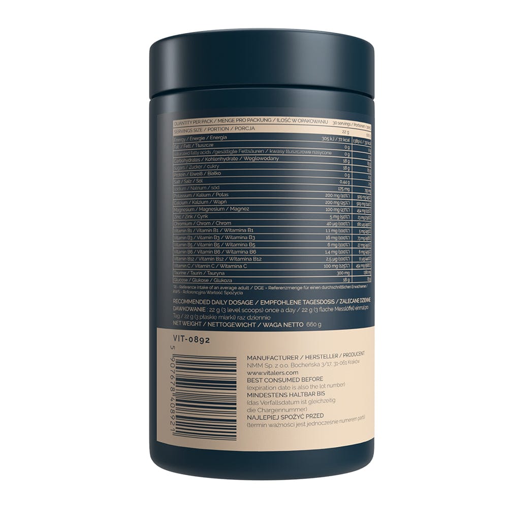 Vitaler's Sport Isotonic ist ein Nahrungsergänzungsmittel in Pulverform. Quelle wichtiger Elektrolyte und Vitaminkomplexe in hoch bioverfügbarer Form. Enthält Zucker und Süßstoffe.