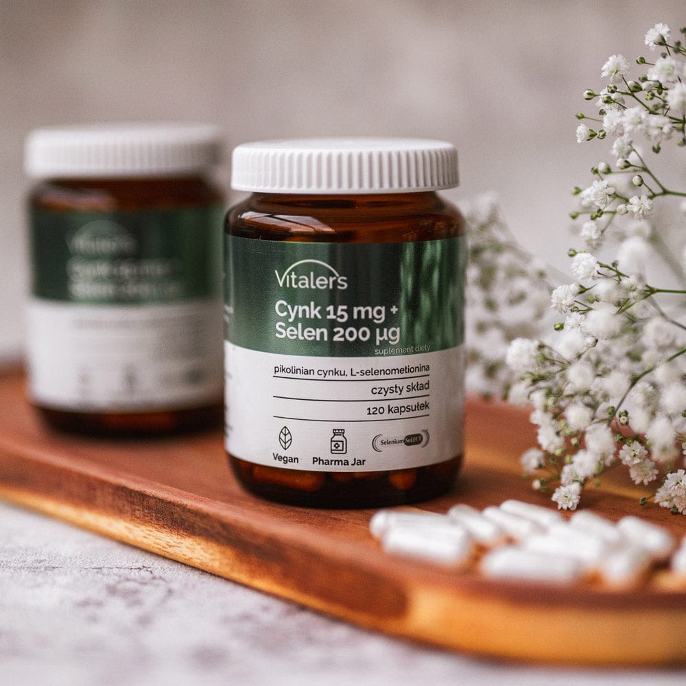 Vitaler's Zink + Selen ist ein Nahrungsergänzungsmittel in Kapseln, das Zink in Form von Zinkpicolinat und Selen in Form von L-Selenomethionin enthält.