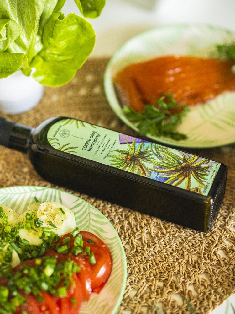 Hochwertiges, ungereinigtes, kaltgepresstes Hanföl sollte kalt verzehrt und im Kühlschrank aufbewahrt werden . Das Öl darf keiner Wärmebehandlung unterzogen werden. Das Produkt sollte direkt vom Löffel oder als Beilage zu kalten Speisen verzehrt werden. Aufgrund seines ausgeprägten Geschmacks passt Hanföl besonders gut zu Salaten mit frischem, knackigem Gemüse. Es kann auch über Brot gegossen oder als Basis für Toppings wie Pesto verwendet werden. Wenn Sie Hanföl mit gekochten Gerichten kombinieren möchten, geben Sie es erst hinzu, nachdem diese abgekühlt sind. Das Öl kann auch direkt auf Haut und Haar aufgetragen oder zur Anreicherung von Cremes, Masken und Spülungen verwendet werden.