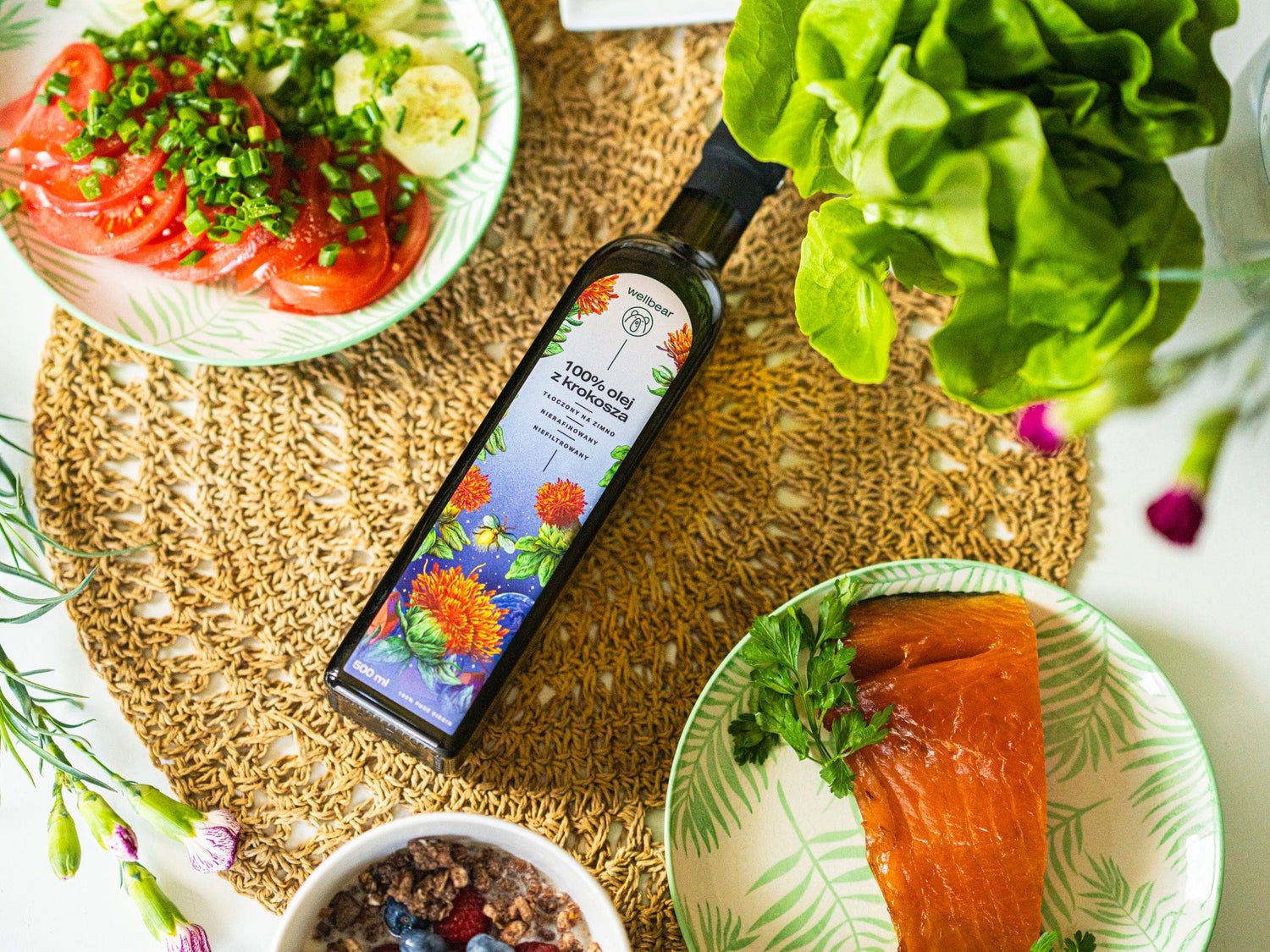 Distelöl wird in der Küche häufig verwendet und lässt sich daher leicht in die tägliche Ernährung integrieren. Das Produkt hat eine leichte Textur und einen angenehmen, leicht bitteren Geschmack. Es eignet sich perfekt für die Zubereitung von Salaten, Salaten, Dips und Saucen. Es wird besonders als Basis für hausgemachte Mayonnaise empfohlen. Es ist jedoch zu beachten, dass Distelöl nicht zum Braten geeignet ist.