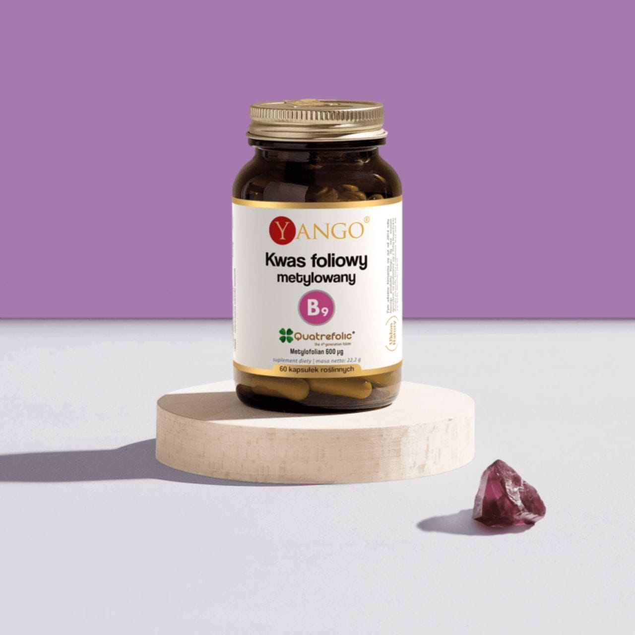 Yango Methylated Folsäure ist ein Nahrungsergänzungsmittel in veganen Cellulosekapseln, das die aktive Form von Folat - 5-MTHF Quatrefolic® (600 µg - 300% RDA) pro Kapsel enthält. Folat trägt zur normalen Blutbildung, Aminosäuresynthese, zur Funktion des Immunsystems und zur Verringerung von Müdigkeit und Ermüdung bei. Folat spielt eine Rolle bei der Zellteilung und dem normalen Homocystein-Stoffwechsel. Ein veganes Produkt mit einer minimalistischen Formulierung, frei von unnötigen Zusätzen.
