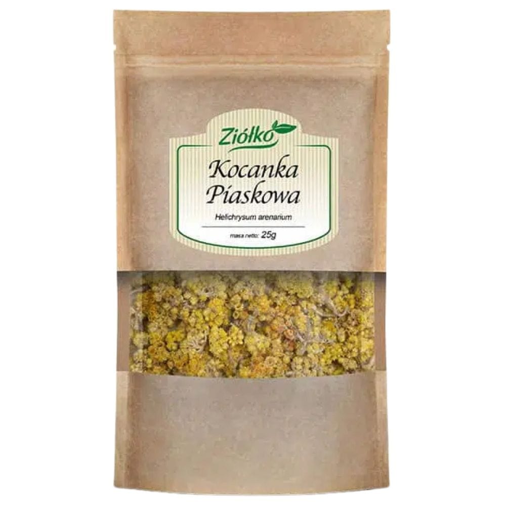 Die Sand-Strohblume (Helichrysum arenarium) ist eine mehrjährige krautige Pflanze, die in Europa, einschließlich Polen, vor allem auf sandigen und trockenen Böden vorkommt. Ihre winzigen, goldgelben Blütenstände werden während der vollen Blüte geerntet, normalerweise im Sommer, wenn sie die meisten Wirkstoffe enthalten.